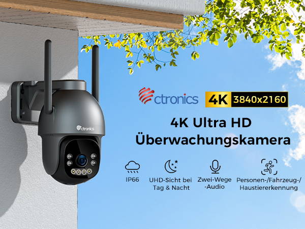 Ctronics 4K 8MP Überwachungskamera Aussen WLAN & 2.4GHz/5GHz Dualband WiFi PTZ IP Kamera