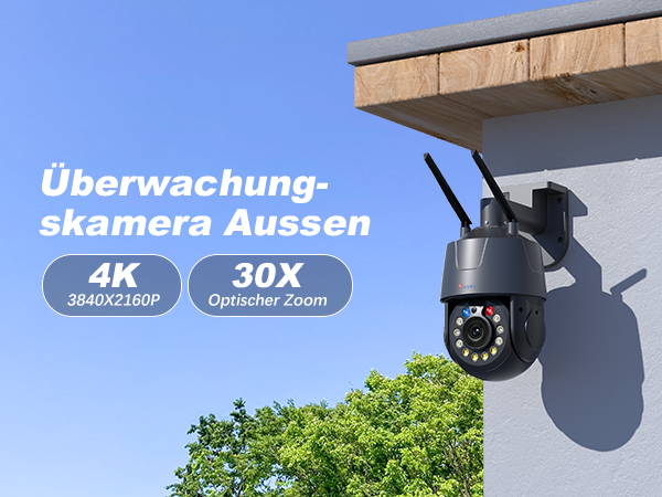 30X Optischer Zoom 5MP PTZ Überwachungskamera Aussen WLAN Mit 150 m Nachtsicht, Personenerkennung