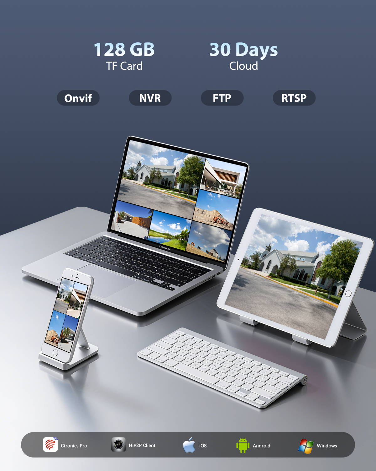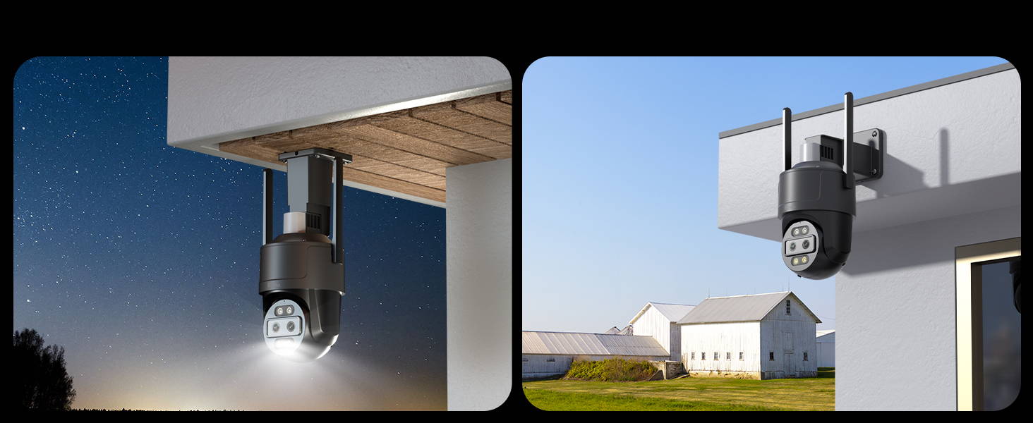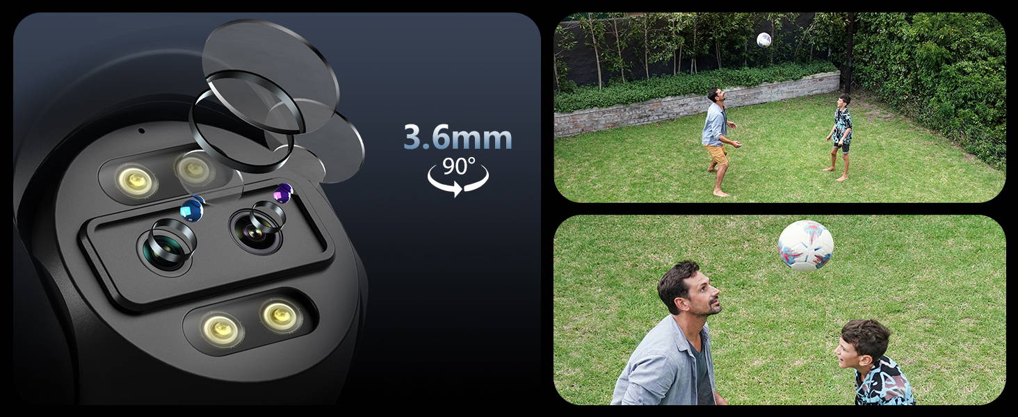 Weitwinkel + Telezoom:Das 3,6mm Weitwinkelobjektiv deckt große Bereiche ab, während das 8mm Teleobjektiv entfernte Details fokussiert. Im Gegensatz zu herkömmlichen Einzelobjektiv-Kameras kombiniert dieses Design Weitwinkel und Detailgenauigkeit.