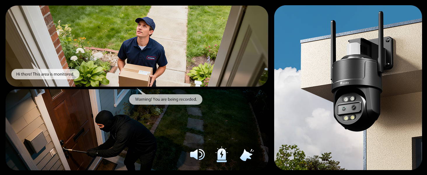 Stärker als normale Alarme:Doppelblitz + Sirene bieten stärkere, langreichende Abschreckung als Einzellicht oder Ton.