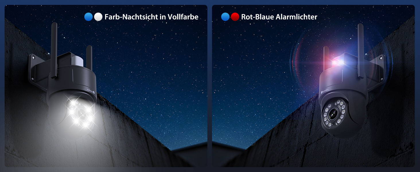 Doppelalarm Doppelwirkung & 3 Nachtsicht-Modi