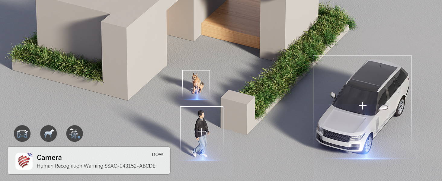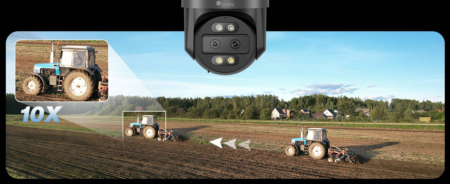 Erkennt Menschen und Fahrzeuge schnell, minimiert Fehlalarme, automatischer Zoom für klare Details.