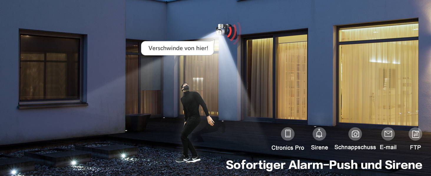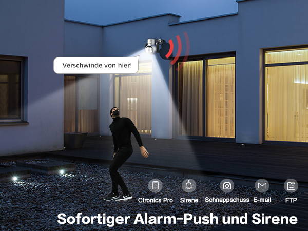 Einstellbare Erfassungsempfindlichkeit, Erfassungsbereich und Voreinstellpunkteinstellungen; Sehen Sie sich jederzeit und überall die Videowiedergabe in der „ctronics pro“-App an